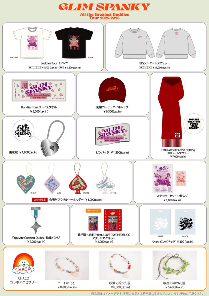 2025年12月〜2016年1月に開催予定の「GLIM SPANKY All the Greatest Buddies Tour 2025-2026」から販売される新作グッズのラインナップ公開!