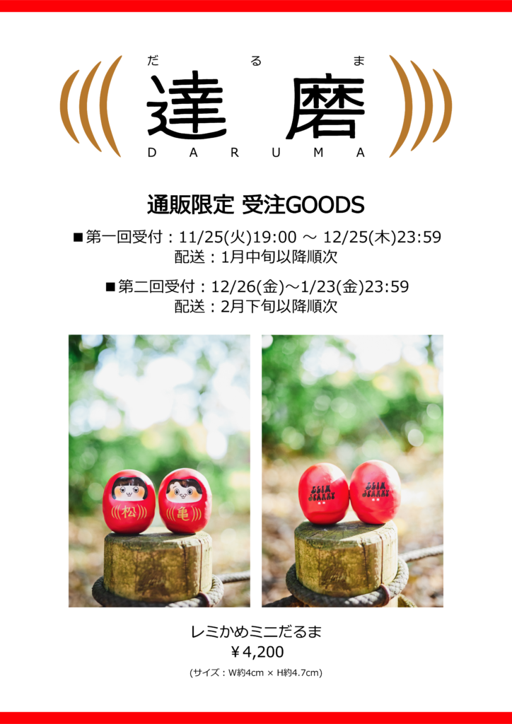 さらに、通販限定&受注生産の「レミかめミニだるま」の販売も決定!