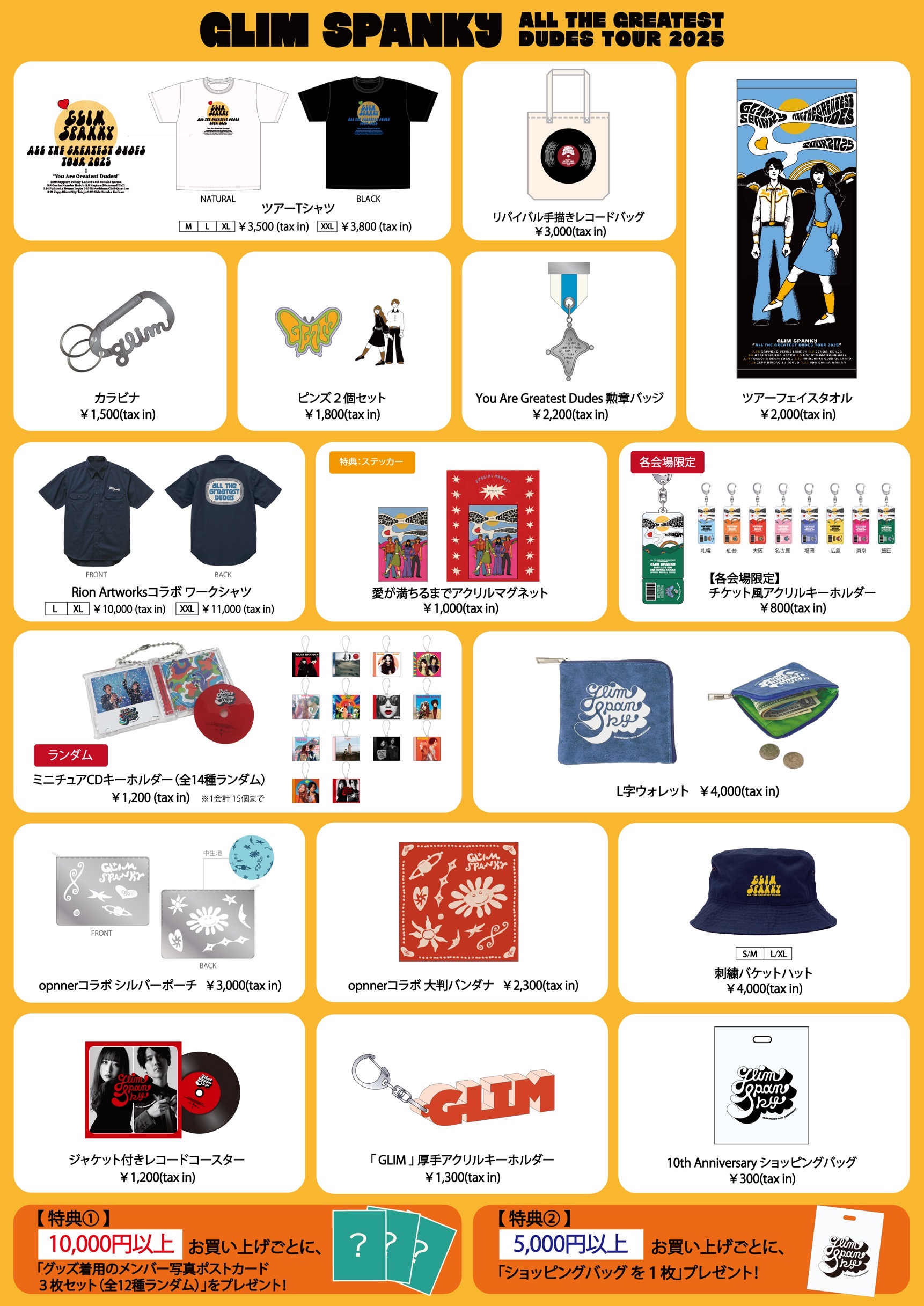 【 各ツアー会場GLIM SPANKYグッズ販売時間 】